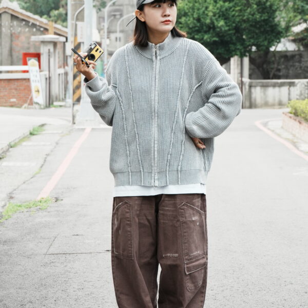 雙拉鍊螺紋毛衣外套